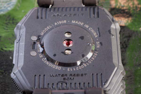 屏幕外是用于保护屏幕的表圈,表圈有较高的凸起,下方印有Amazfit的logo,在日常使用是可以有效保护表盘玻璃不会被划伤。更何况手表采用康宁大猩猩第3代玻璃,更硬也更耐刮擦,户外登山或是进行其他户外运动时,表盘更加坚固,运动过程中也更安心。表身则采用高分子材料,坚固耐用。